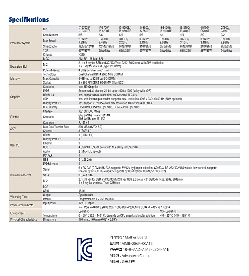 산업용 메인보드 AIMB-286F-00A1E Advantech - 디앤시스 : 디앤시스