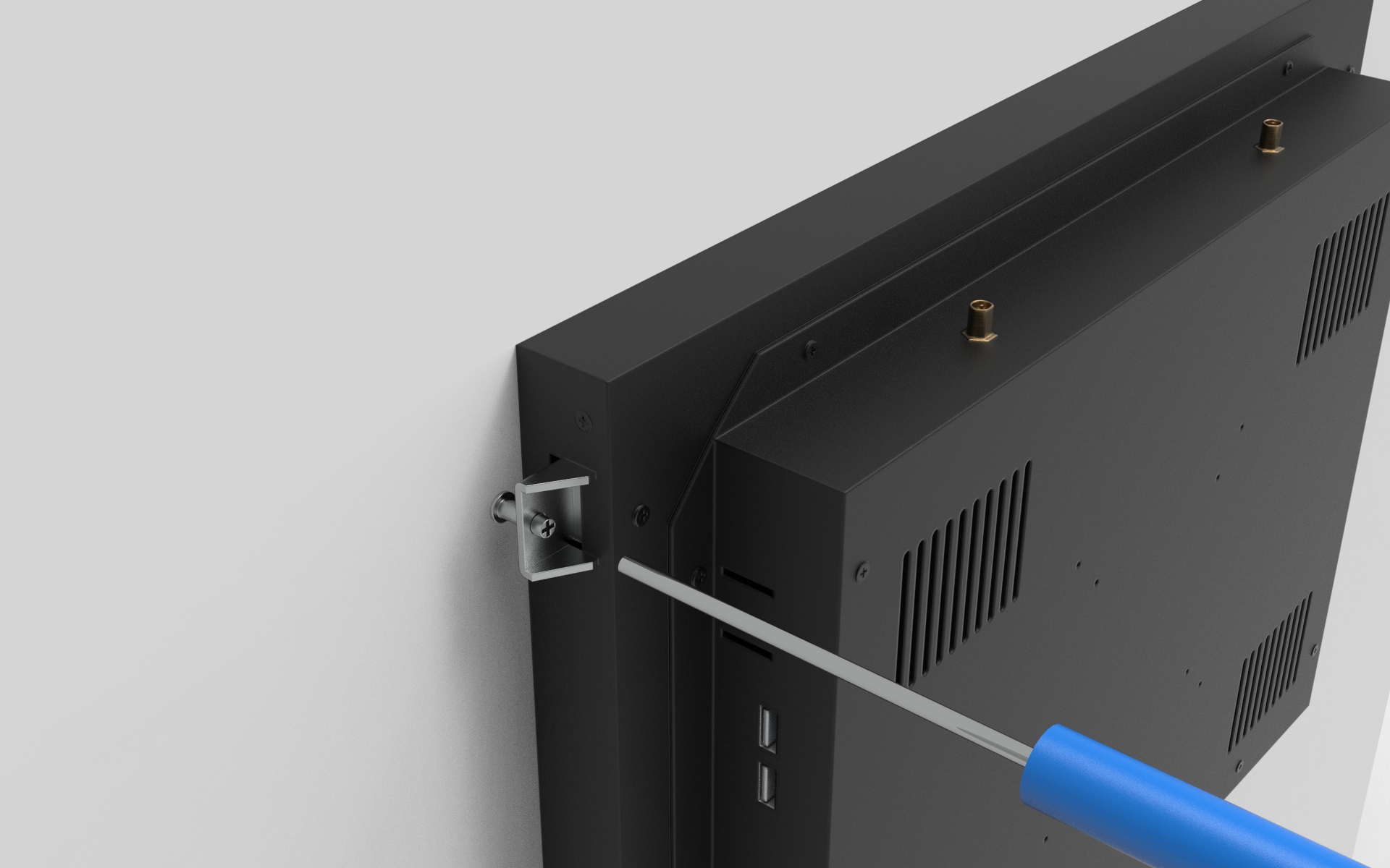 DAPT DAPB 전용 러그 부속 장착안내 Lug parts(4pcs 1set) LUG(러그) / U-Clamp (유클램프:클램프) 고정부속을 이용하여 패널컴퓨터 후면부의 고정홀에 결속 후 드라이버를 이용하여 제품이 들어갈 타공면에 고정 장착하여 마감처리합니다. 판넬(Panel Mount)마운트 패널컴퓨터(Panel Computer)는 비전(Vision)장비, 반도체장비, 함체 등의 매립용(Embedded / Built-in / Inset)으로 적합한 제품입니다. 메탈 프론트(Steel /Aluminium /Alloy)를 이용하여 기구앞에서 장착하거나 고정형 러그(U-Clamp/LUG)를 이용하여 판넬 뒤에서 고정할 수 있습니다. 장비 및 함체와 일체감있는 제품을 원하시거나 열악한 환경의 견고한 시스템 구성을 필요로 하신 분들께 추천 드립니다. 터치스크린이 기본 장착되어 있어 장비 조작이 용이하며 측면부의 LED 파워스위치 및 USB 포트를 통해 쉽게 POWER ON/OFF 및 장비 CONTROL 을 하실 수 있습니다. 시리얼포트 및 LAN 포트,패러럴 포트 등 다양한 입출력 포트(I/O)를 지원하므로 사용되는 요구사항에 따라 유연한 시스템 구축이 가능합니다. 장비제어용 컴퓨터 비전장비용 컴퓨터 생산자동화 컴퓨터 ※ I/O Port는 보드사양에 따라 변경됨