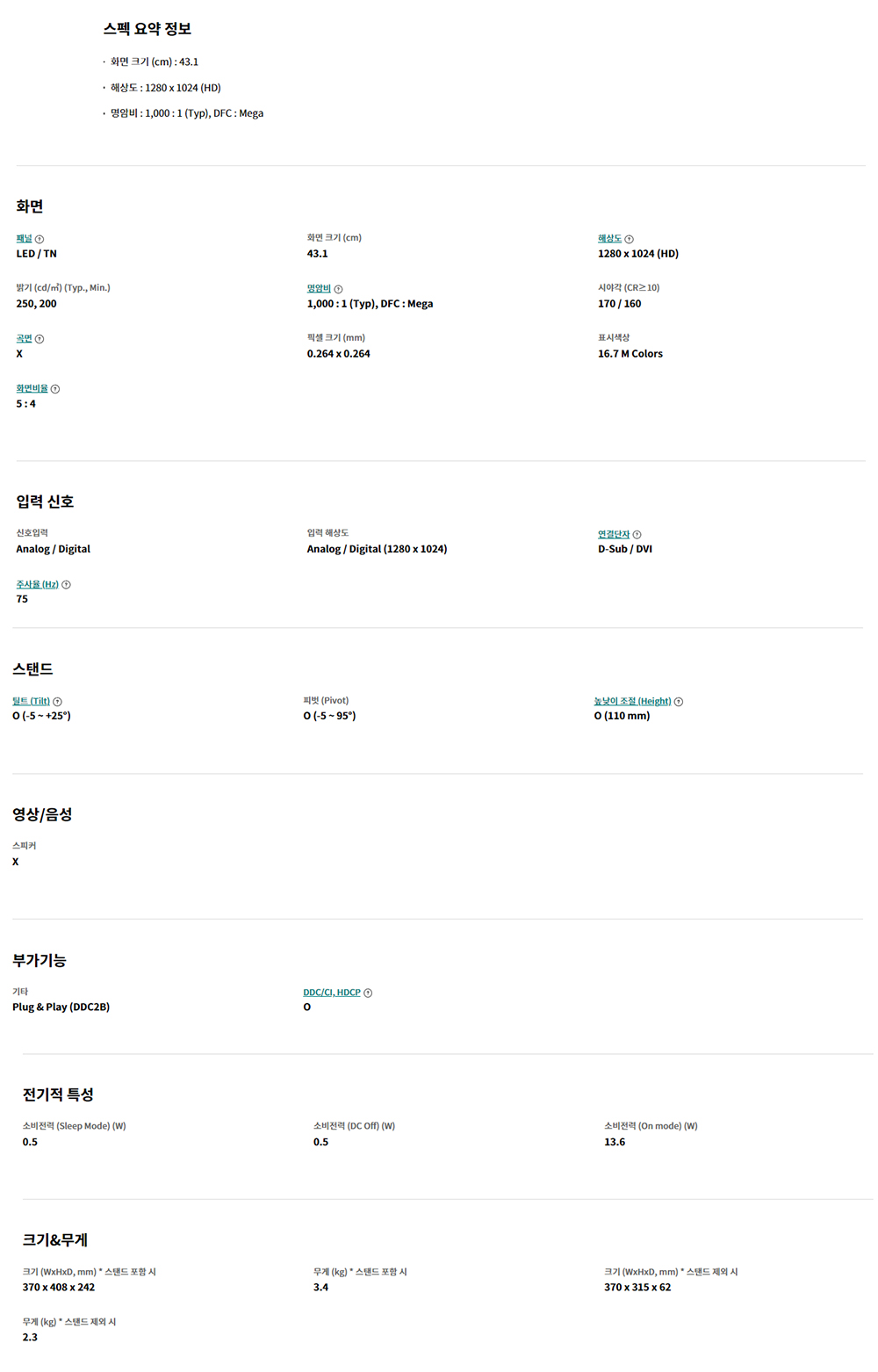 LG 17MB15P DVI D-SUB PIVOT 17인치 모니터 : 디앤시스
