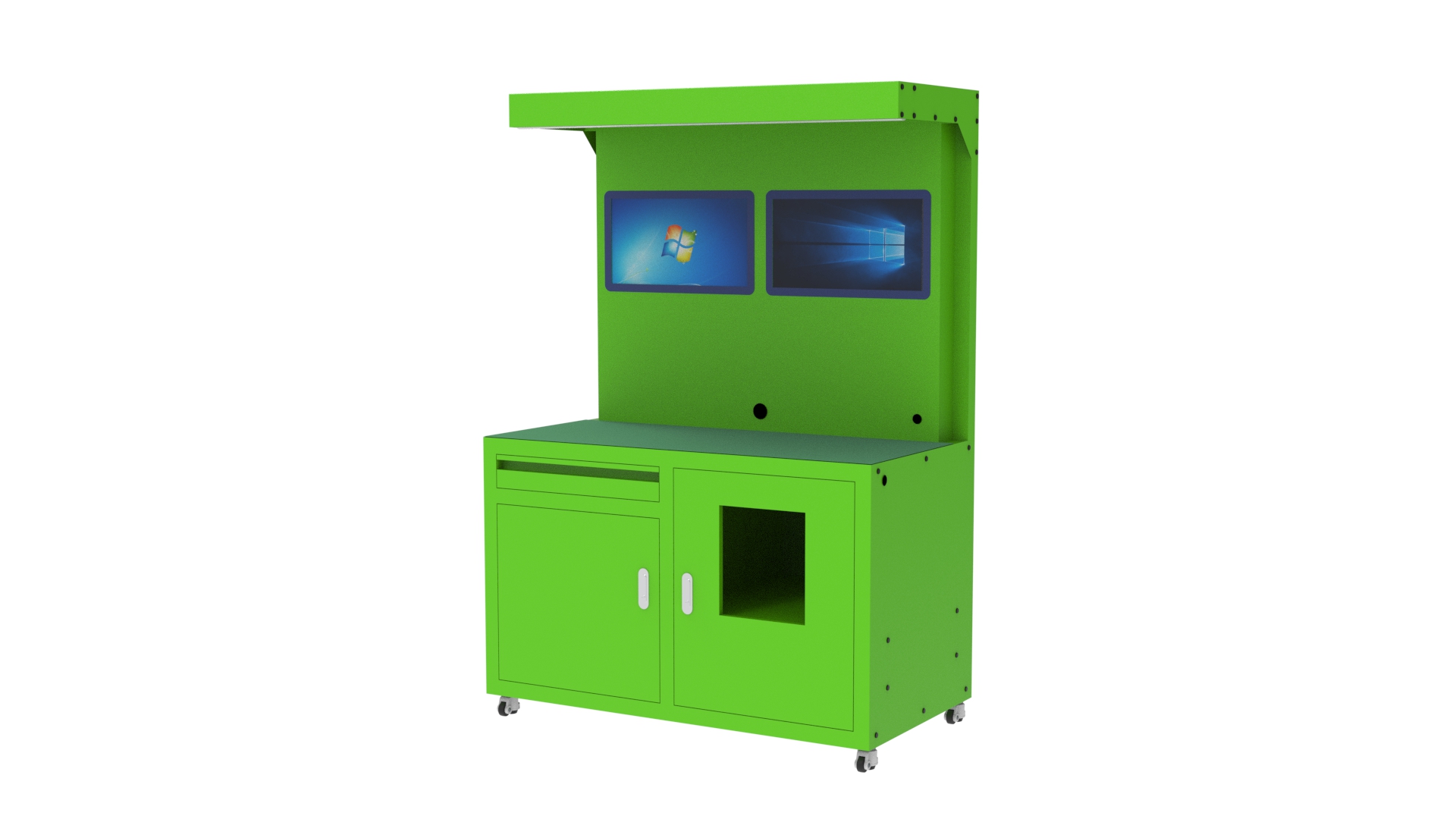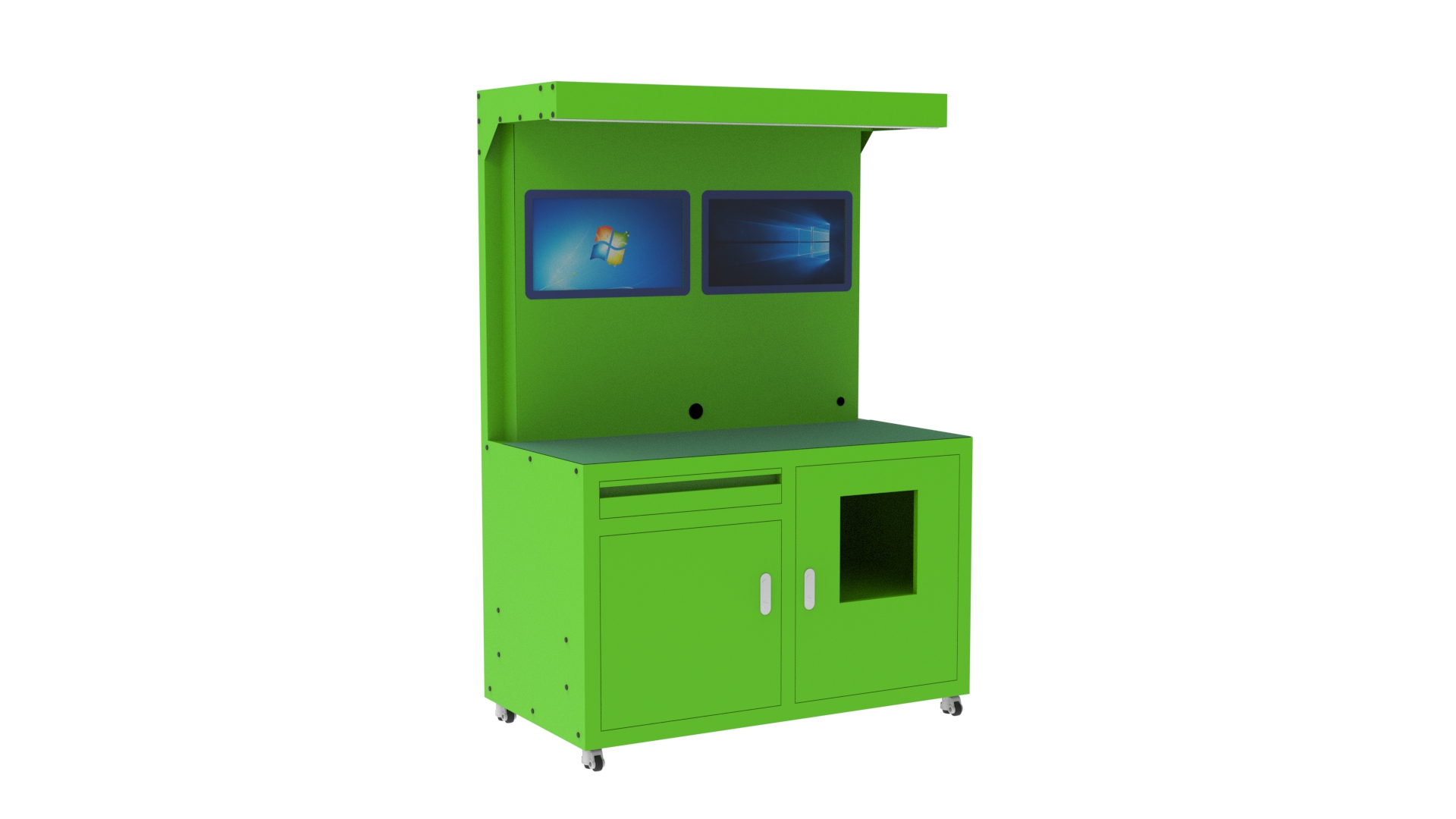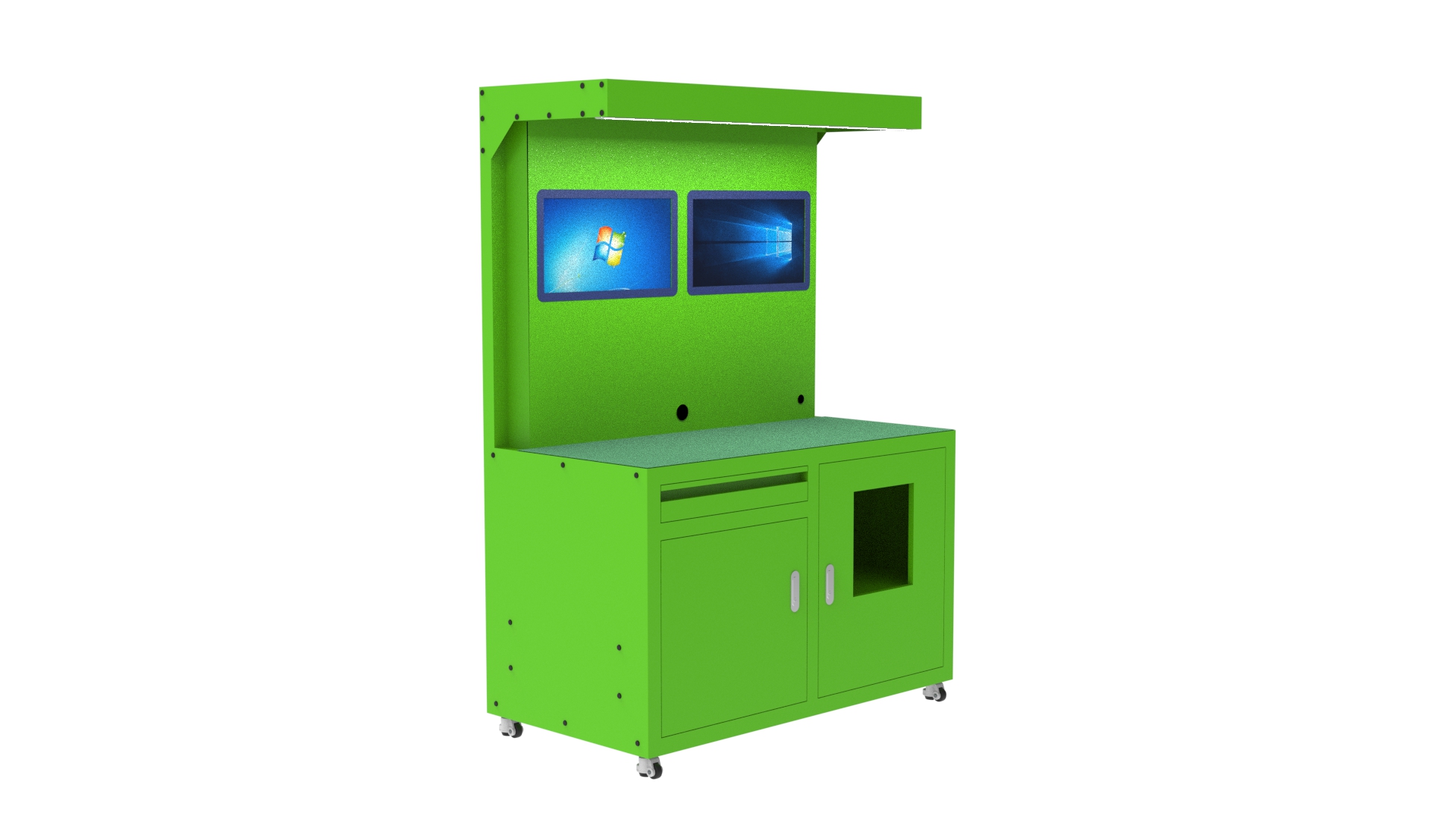 패널컴퓨터 2대 혹은 터치모니터 2대 및 미니PC 구성등 다양한 방법으로 커스텀 제작이 가능합니다.