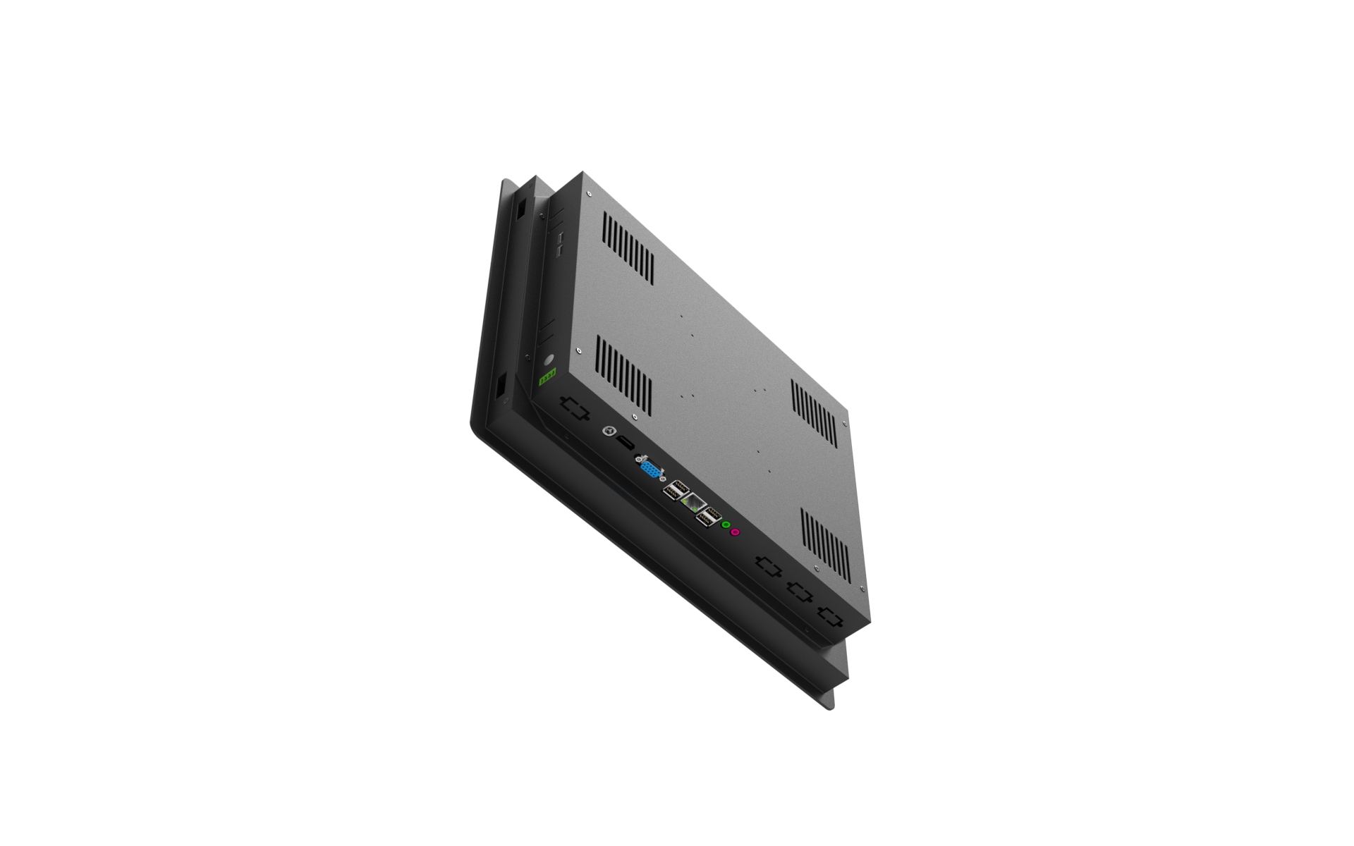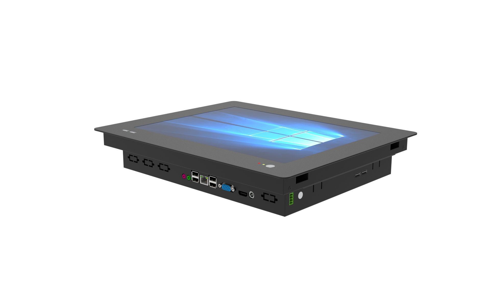 패널마운트(Panel Mount : 판넬마운트) 패널컴퓨터(Panel Computer : 판넬PC)는 비전(Vision)장비, 반도체장비, 함체 등의 매립용(Embedded / Built-in / Inset)으로 적합한 제품입니다. 메탈 프론트(Steel /Aluminium /Alloy)를 이용하여 기구앞에서 장착하거나 고정형 러그(U-Clamp/LUG)를 이용하여 판넬 뒤에서 고정할 수 있습니다. 장비 및 함체와 일체감있는 제품을 원하시거나 열악한 환경의 견고한 시스템 구성을 필요로 하신 분들께 추천 드립니다. 터치스크린이 기본 장착되어 있어 장비 조작이 용이하며 측면부의 LED 파워스위치 및 USB 포트를 통해 쉽게 POWER ON/OFF 및 장비 CONTROL 을 하실 수 있습니다. 시리얼포트 및 LAN 포트,패러럴 포트 등 다양한 입출력 포트(I/O)를 지원하므로 사용되는 요구사항에 따라 유연한 시스템 구축이 가능합니다.
