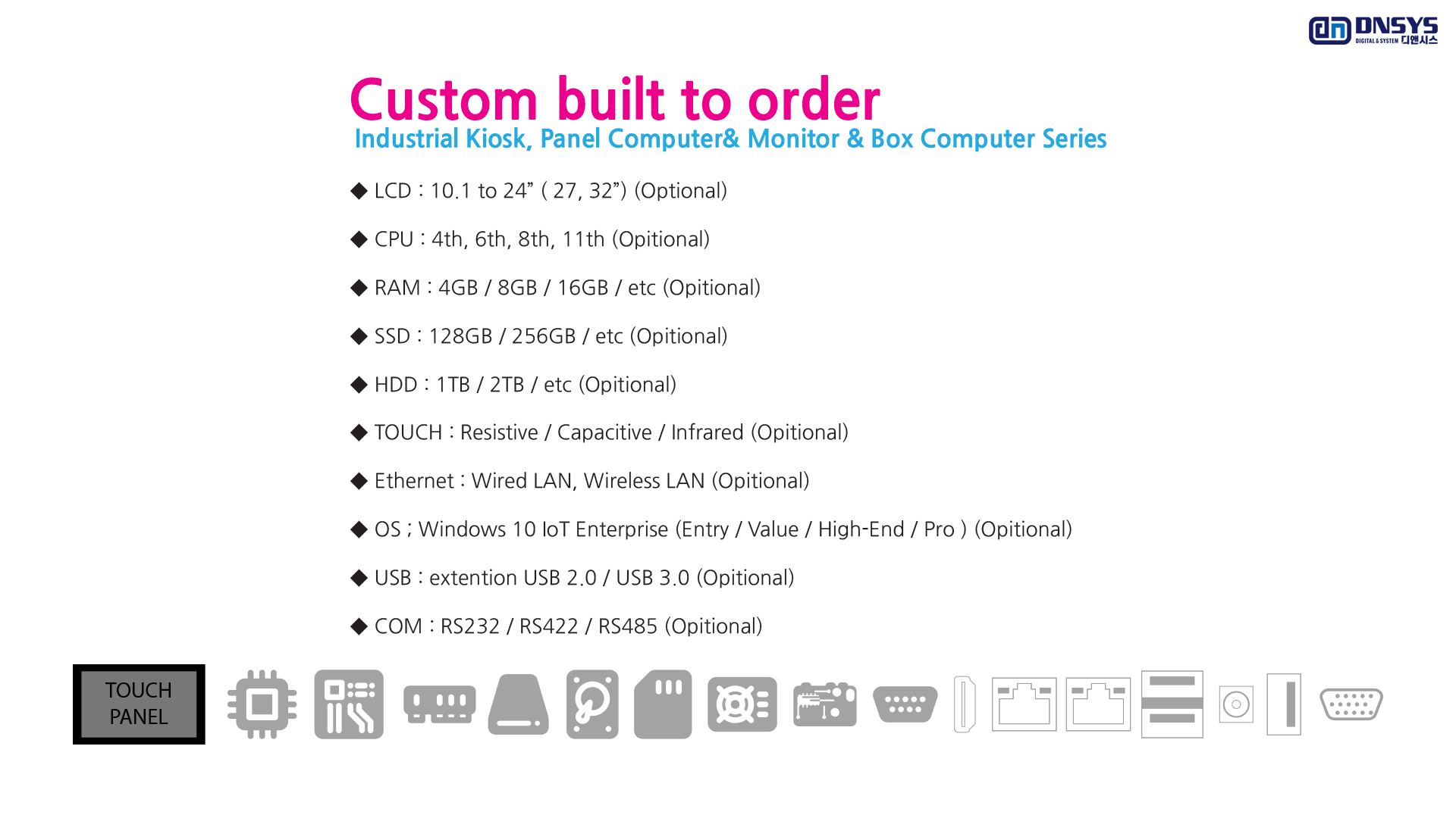 산업용PC,미니컴퓨터,터치스크린,임베디드시스템,일체형컴퓨터,키오스크,터치모니터,올인원PC,미니PC,KIOSK,주문제작,DNSYS