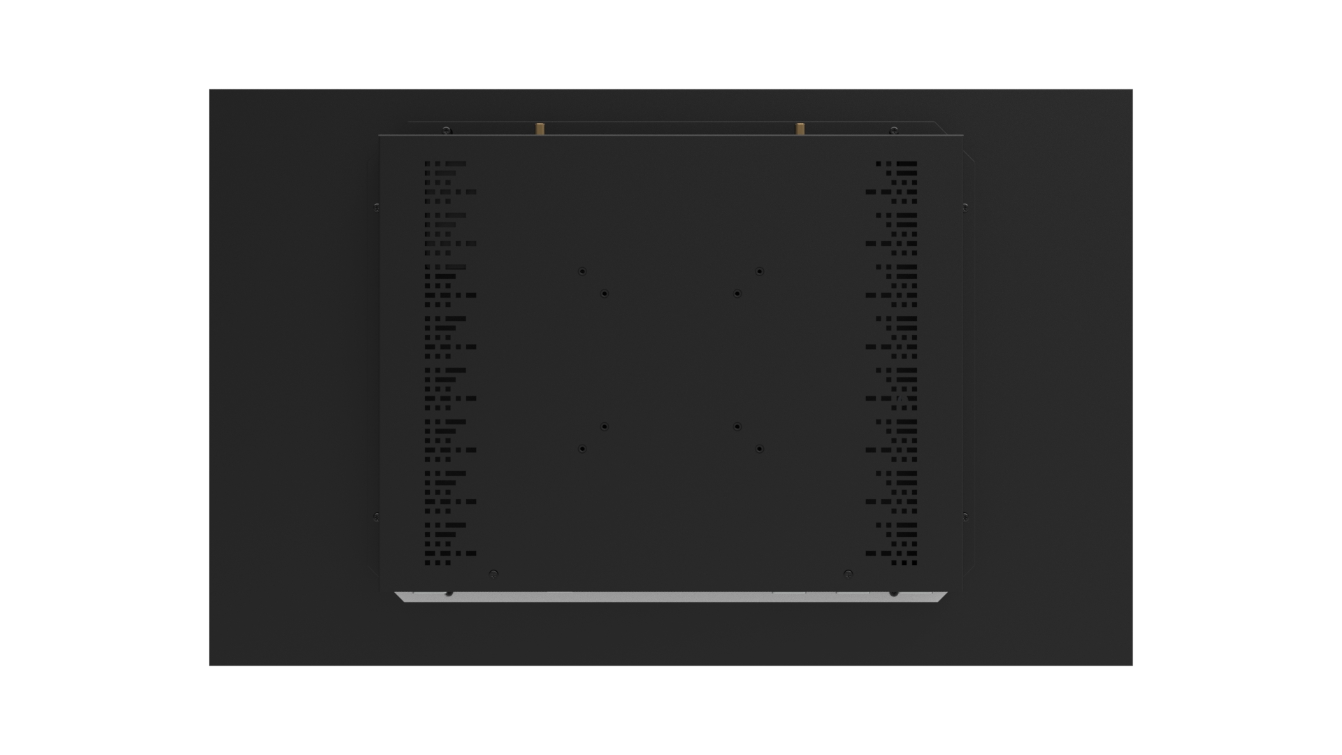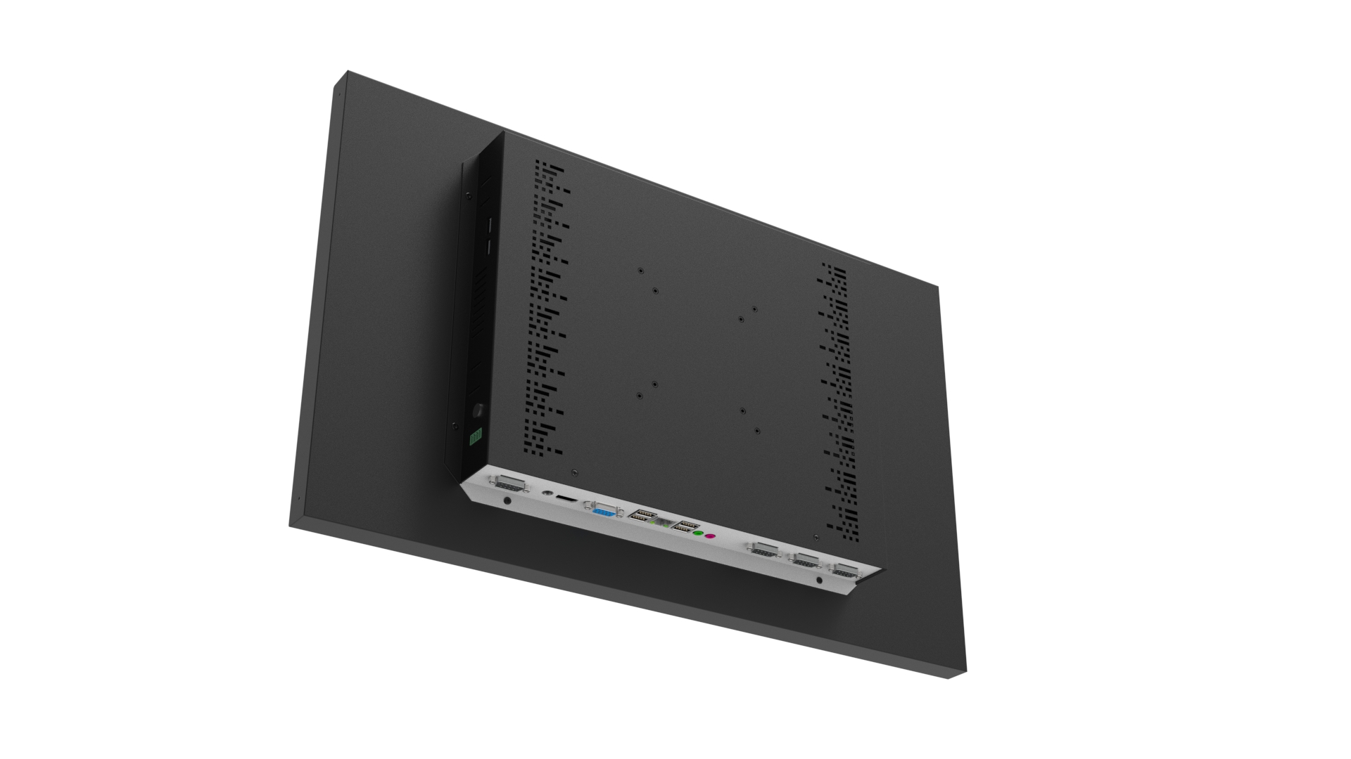 월마운트 일체형 컴퓨터(Wall mount computer)는 컴퓨터 뒷부분 국제규격의 베사홀(VESA HOLE)을 이용하여 브래킷(Bracket)이나 거치대(Stand/Mount/Holder) 등을 고정, 벽걸이/매립 형태 등으로 활용할 수 있는 방식을 말합니다. 기구 뒷면에 100x100mm 와 75x75mm 규격의 홀을 선택적으로 이용하여 고정식 혹은 접이식 암브래킷(Arm Bracket/Mount/Holder/Clamp)을 활용하여 벽이나 장비 등에 마운팅 할 수 있습니다. 월마운트 타입(Wall Mount type)의 경우 기구 형태가 그대로 외부에 노출 되기에 디자인 및 색상, 로고, 도장 방식이 고객마다 다양하며 애플리케이션 별로 신규로 모델을 개발 , 디자인 되어야 하는 경우가 많습니다.