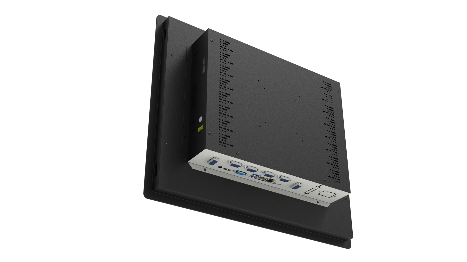 월마운트 일체형 컴퓨터(Wall mount computer)는 컴퓨터 뒷부분 국제규격의 베사홀(VESA HOLE)을 이용하여 브래킷(Bracket)이나 거치대(Stand/Mount/Holder) 등을 고정, 벽걸이/매립 형태 등으로 활용할 수 있는 방식을 말합니다. 기구 뒷면에 100x100mm 와 75x75mm 규격의 홀을 선택적으로 이용하여 고정식 혹은 접이식 암브래킷(Arm Bracket/Mount/Holder/Clamp)을 활용하여 벽이나 장비 등에 마운팅 할 수 있습니다. 월마운트 타입(Wall Mount type)의 경우 기구 형태가 그대로 외부에 노출 되기에 디자인 및 색상, 로고, 도장 방식이 고객마다 다양하며 애플리케이션 별로 신규로 모델을 개발 , 디자인 되어야 하는 경우가 많습니다.