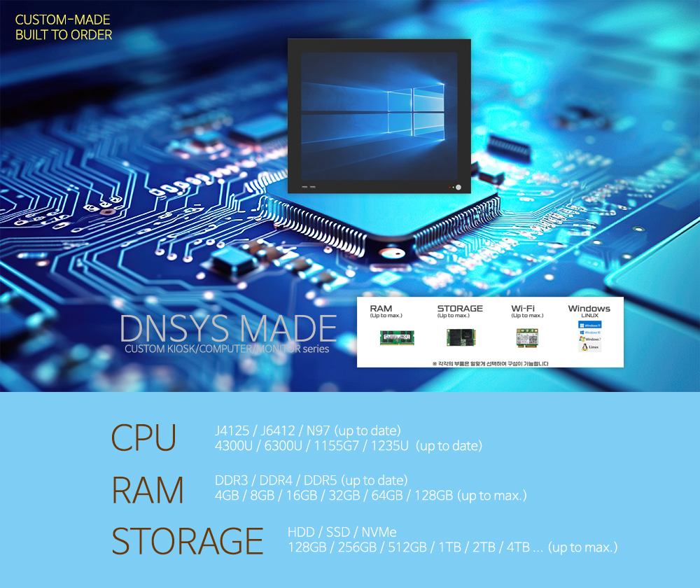 산업용PC,미니컴퓨터,터치스크린,임베디드시스템,일체형컴퓨터,키오스크,터치모니터,올인원PC,미니PC,KIOSK,주문제작,DNSYS