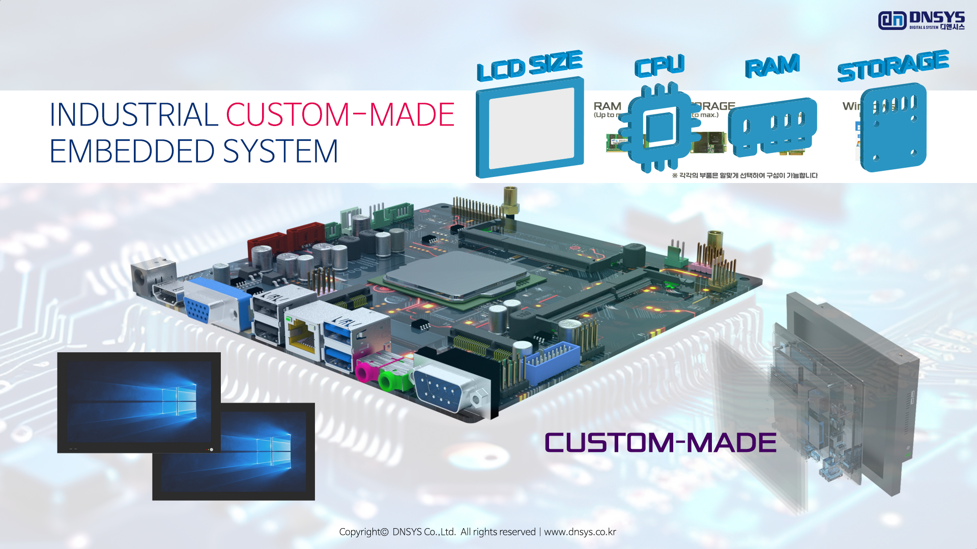 디앤시스는 이러한 시장의 다양한 요구, 사양, 단가, 기능에 맞추어 전용으로 개발 생산 가능하며 산업용 컴퓨터 분야(산업현장,공장,시설,학교,공항,병원,기관,쇼핑몰 등)의 오랜 경험과 기술을 바탕으로 신뢰성 및 안정성 높은 최고의 제품을 개발 생산 하여 드립니다.