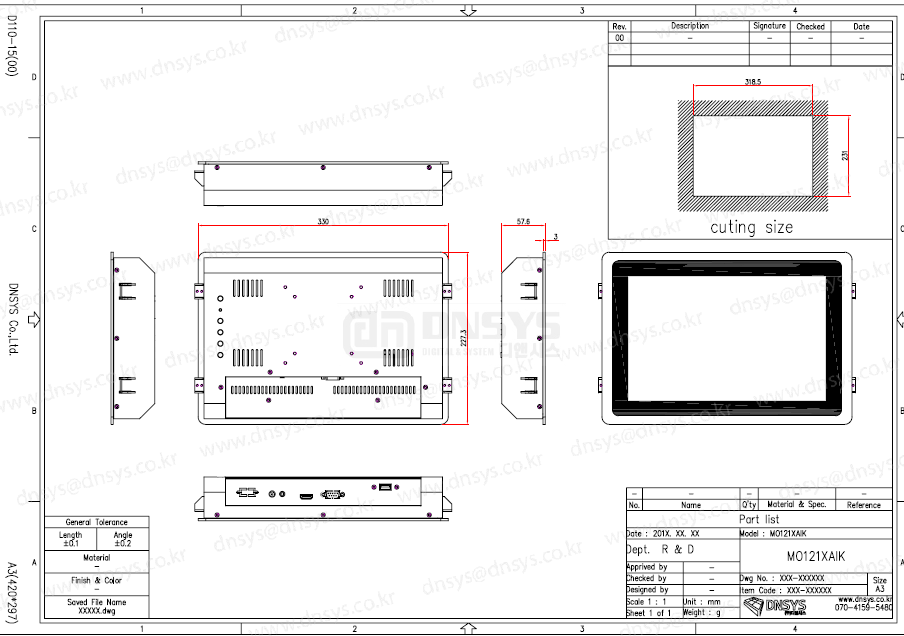 MO121DAIB 산업용 감압식 IP65 전면방수 터치 패널 모니터 시리즈 - 디앤시스